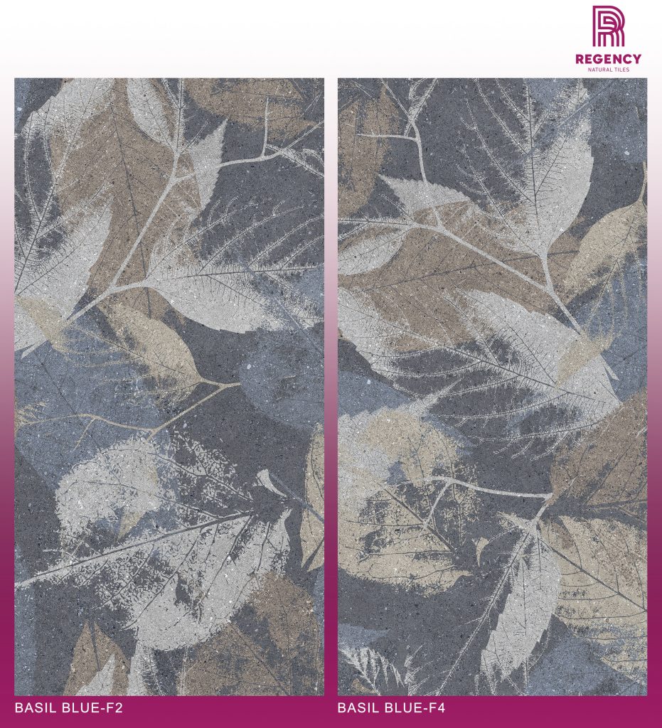 The Basil Blue Series is a large 600 mm x 1200 mm Glazed Vitrified Tile (GVT) in a striking blue color. The Polished Carving finish combines 3D engraved texture with a high-gloss surface for luminous depth.