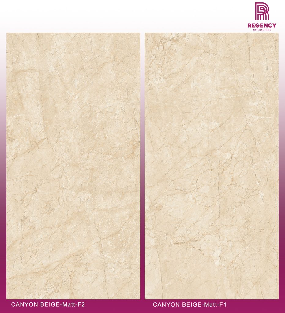 The Canyon Beige Series is a large 600 mm x 1200 mm Glazed Vitrified Tile (GVT) in a warm, natural beige stone pattern. The design is available across Polished, Carving, and Matt finishes.