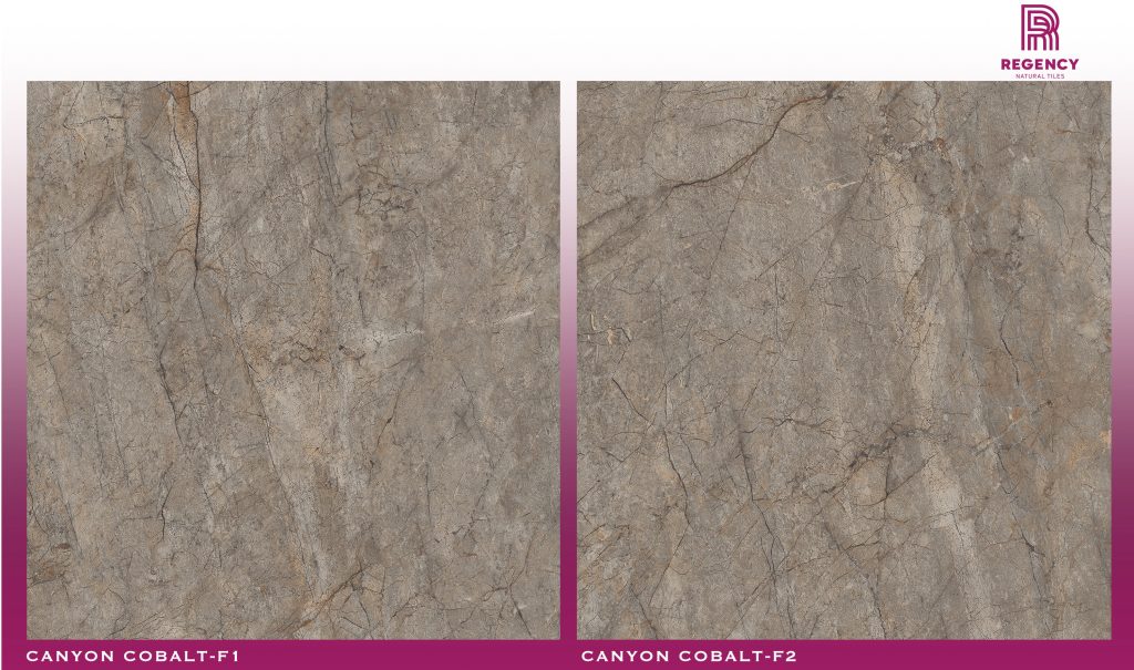 The Canyon Cobalt Series is a 600 mm x 600 mm Glazed Vitrified Tile (GVT) in a rich, deep blue color. The Polished finish provides a high-gloss, mirror-like surface that enhances the drama of the color.