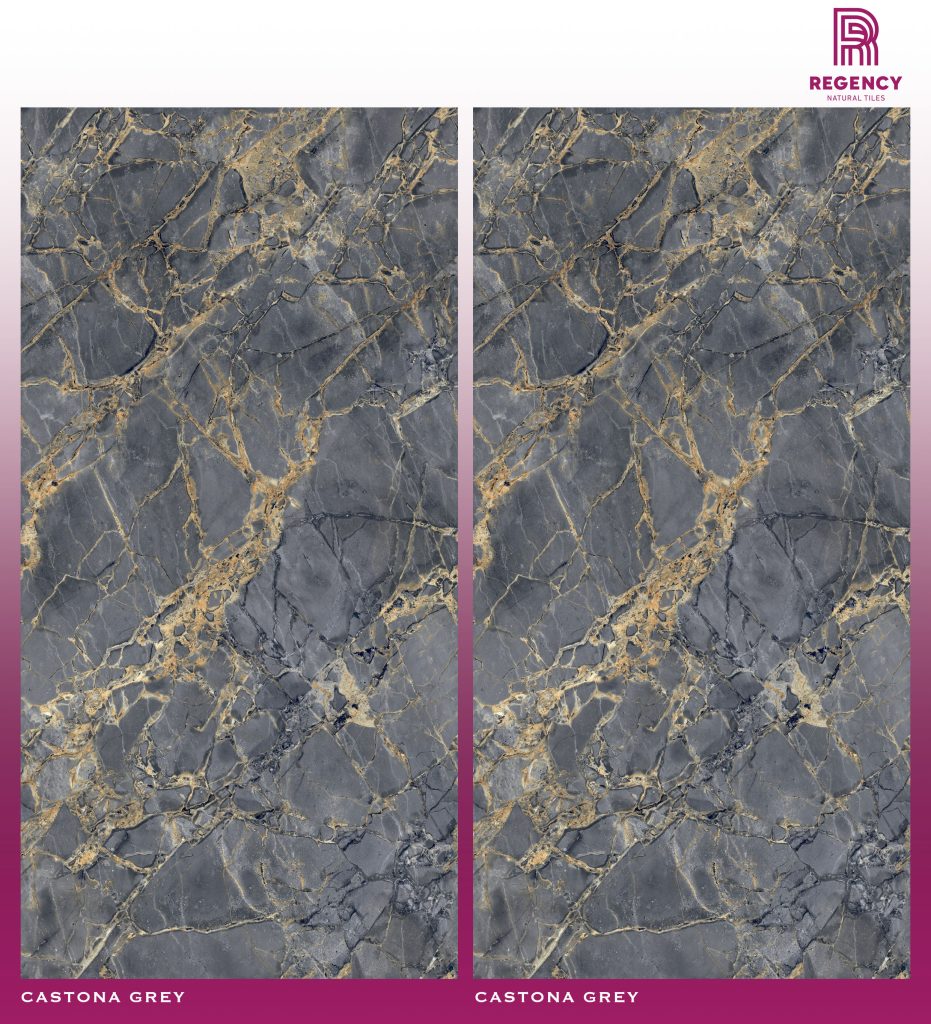 The Castona Grey Series is a large 600 mm x 1200 mm Glazed Vitrified Tile (GVT) in a contemporary grey stone design. It is available in both a Matt finish and a Super High-Gloss (SHG) finish.