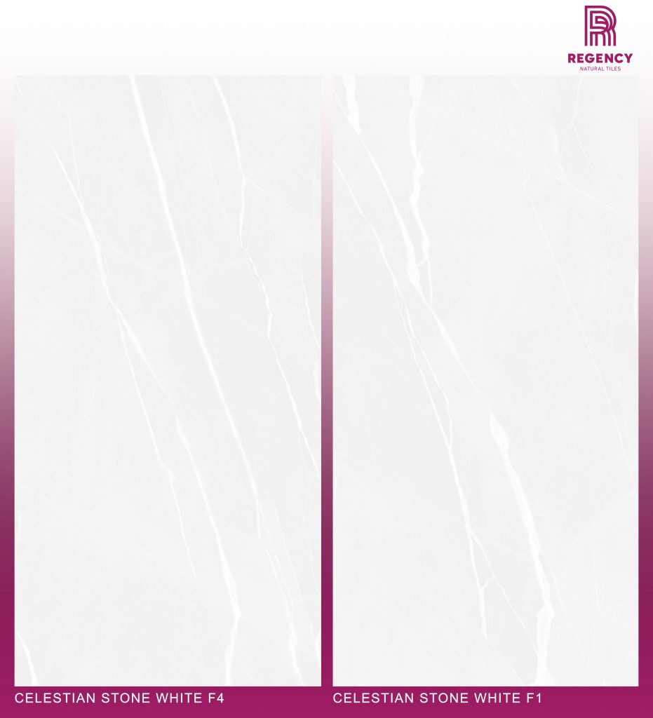 The Celestial Stone White Series is a large 600 mm x 1200 mm Glazed Vitrified Tile (GVT) in a bright, clean white stone design. It is available in both a Polished (Glossy) finish and a Matt finish.