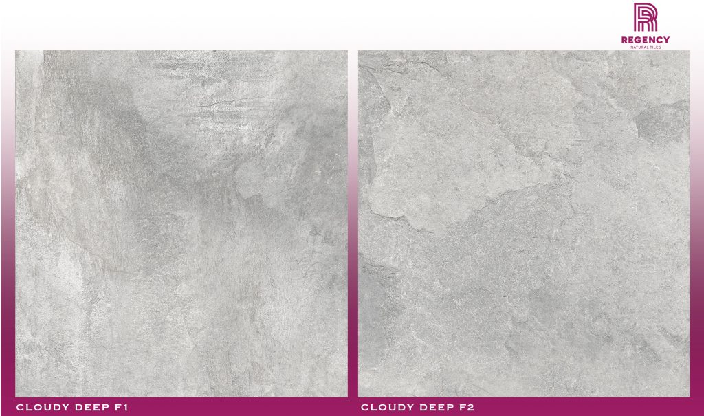 The Cloudy Deep Series is a 600 mm x 600 mm Glazed Vitrified Tile (GVT) featuring a rich, dark color with subtle, cloudy variations. The Carving finish creates an immersive 3D engraved texture, providing realistic depth and strong surface grip.