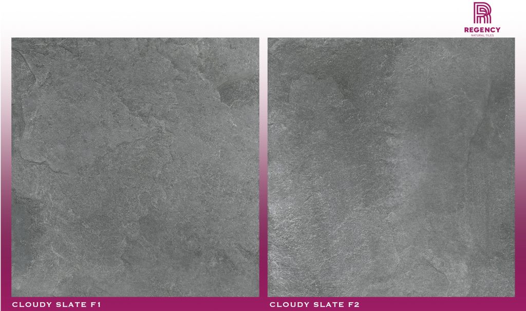 The Cloudy Slate Series is a 600 mm x 600 mm Glazed Vitrified Tile (GVT) featuring a grey, slate-like design with subtle clouding. The Carving finish creates an immersive 3D engraved texture, providing realistic depth and a strong surface grip.