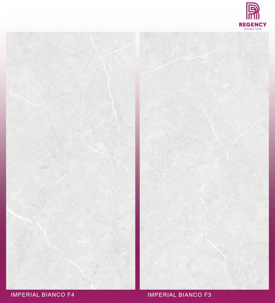 The Imperial Bianco Series is a large 600 mm x 1200 mm Glazed Vitrified Tile (GVT) in a bright, clean white color with a subtle marble pattern. It is available in both a Polished (Glossy) finish and a Matt finish.