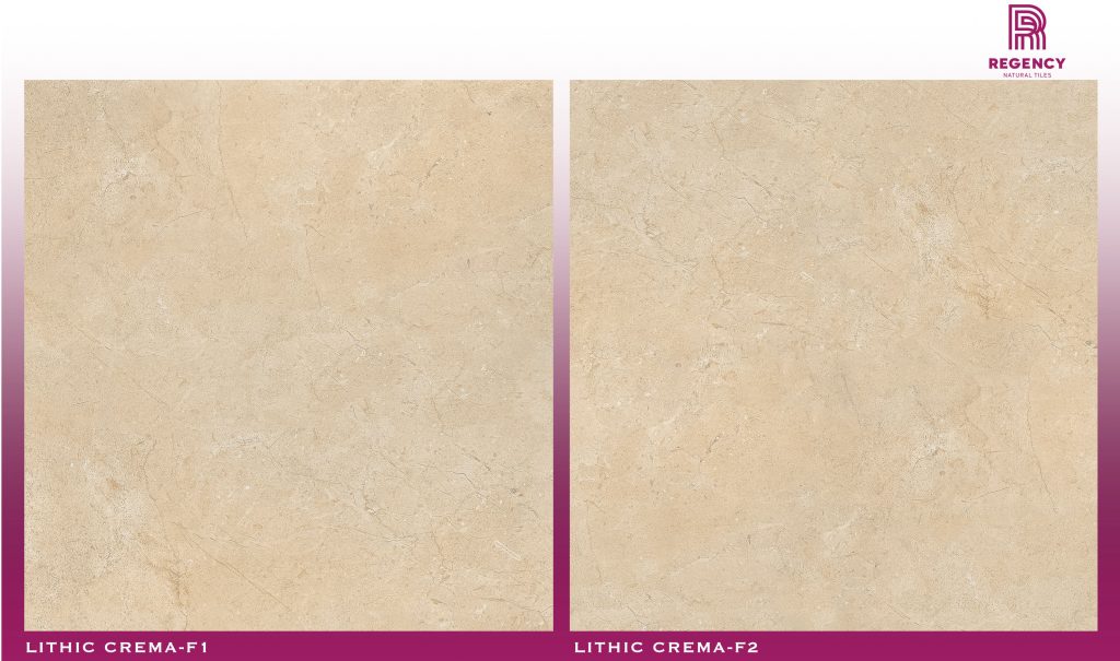 The Lithic Crema Series is a 600 mm x 600 mm Glazed Vitrified Tile (GVT) featuring a design that mimics natural stone (“Lithic” means relating to stone) in a warm, creamy beige color. As the finish isn’t specified, this durable tile is typically available in either a polished (glossy) or matte finish.