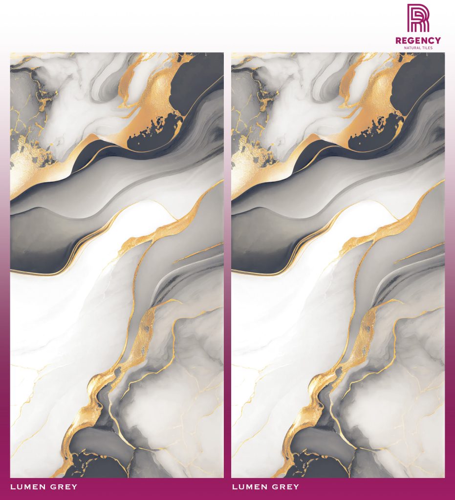 The Lumen Grey Series is a large 600 mm x 1200 mm Glazed Vitrified Tile (GVT) in a bright, luminous grey color. The High Polished (HPOL) finish creates a brilliant, mirror-like surface for maximum luxury.