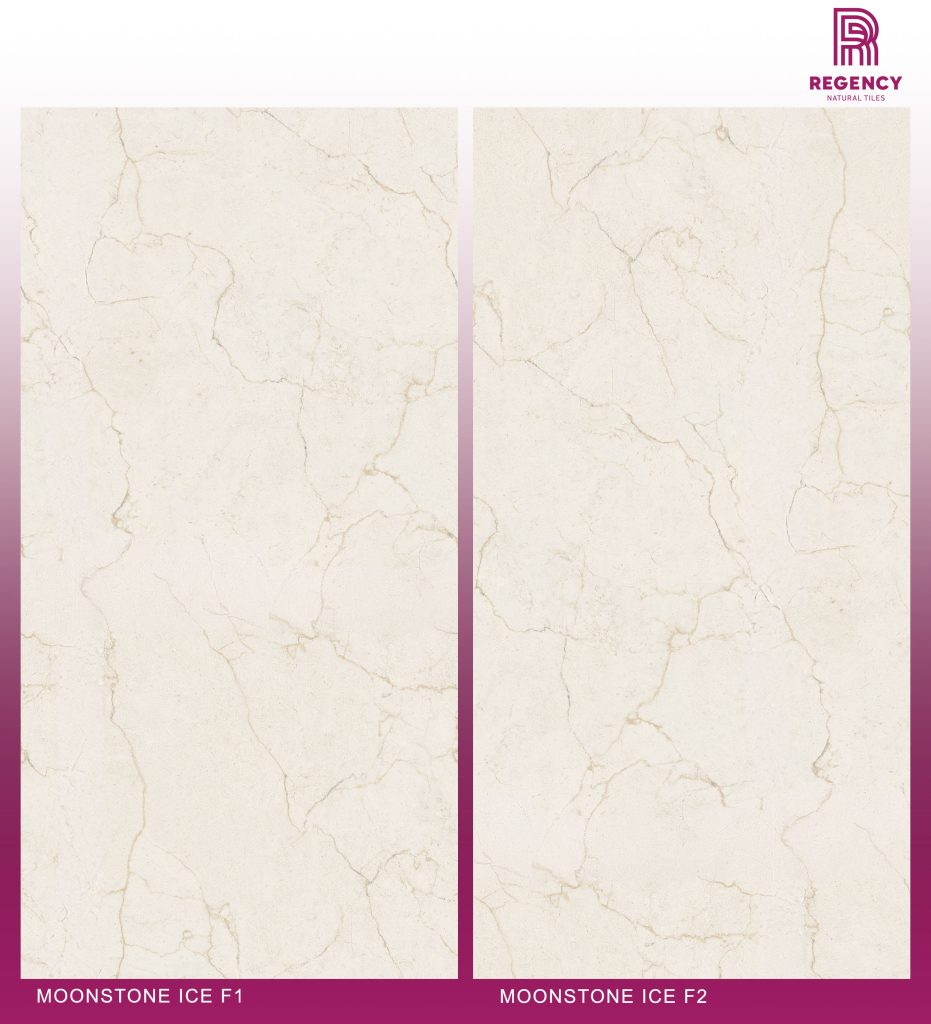 The Moonstone Ice Series is a large 600 mm x 1200 mm Glazed Vitrified Tile (GVT) in a very light, cool-toned design. It is available in both a Polished (Glossy) finish and a Matt finish.