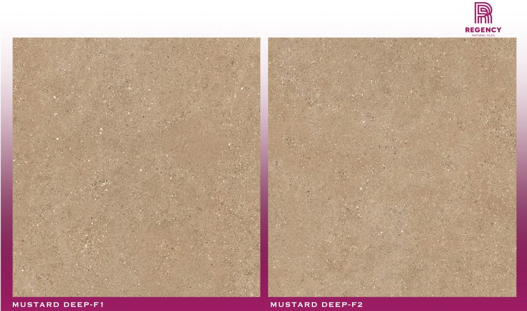 The Mustard Deep Series is a 600 mm x 600 mm Glazed Vitrified Tile (GVT) featuring a rich, deep mustard or earthy yellow color. The Matt finish provides a low-sheen, non-reflective surface that ensures superior anti-slip grip.