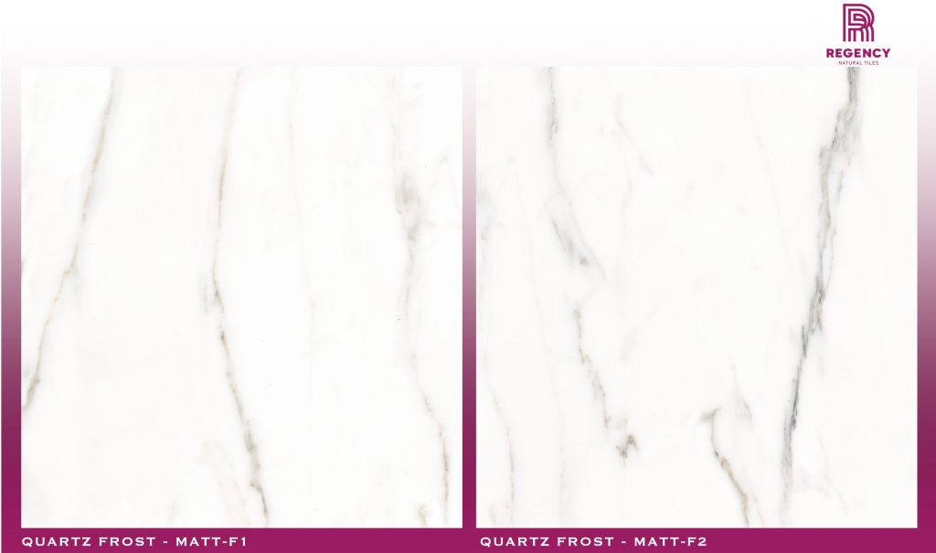 The Quartz Frost Series is a 600 mm x 600 mm Glazed Vitrified Tile (GVT) featuring a bright, light-colored quartz design. It is available in both a Polished (Glossy) finish and a Matt finish.