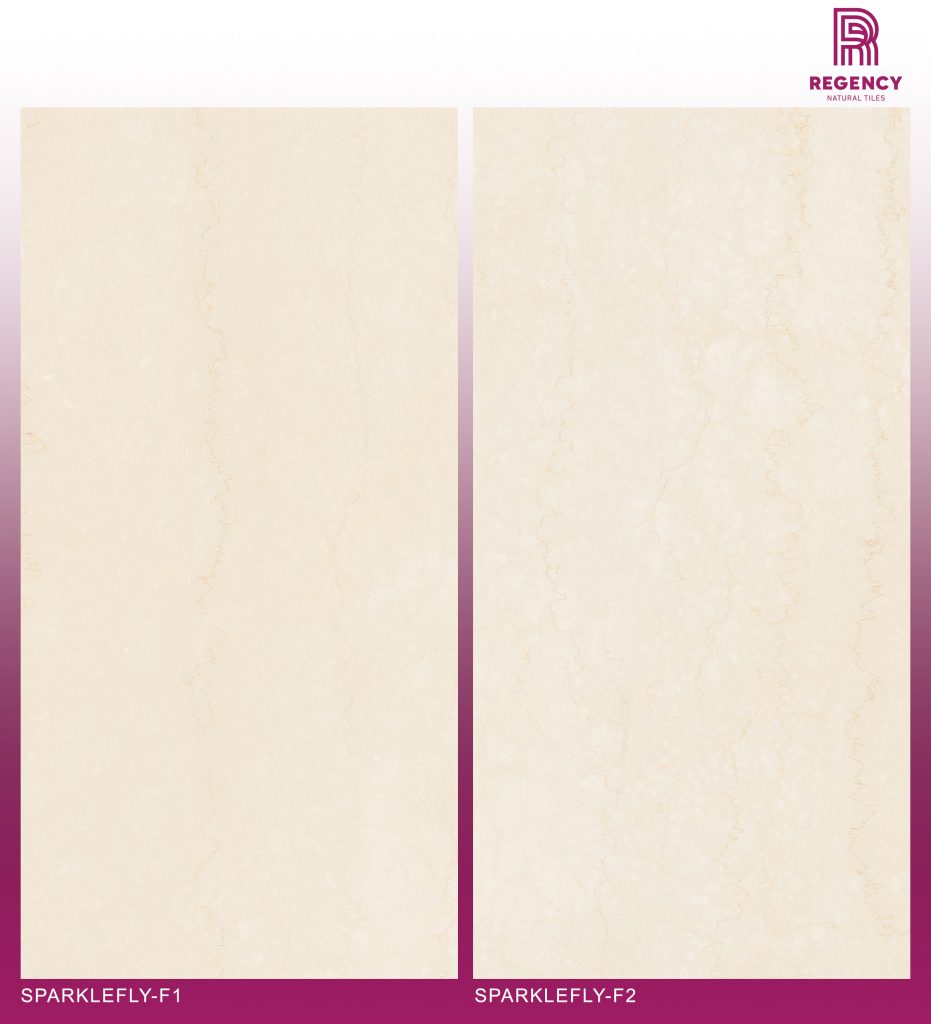 The Sparklefly Series is a large 600 mm x 1200 mm Glazed Vitrified Tile (GVT) featuring a light, luminous design with subtle bright or metallic flecks. The Polished finish provides a high-gloss, mirror-like surface that enhances luxury and light reflection, highlighting the sparkle effect.