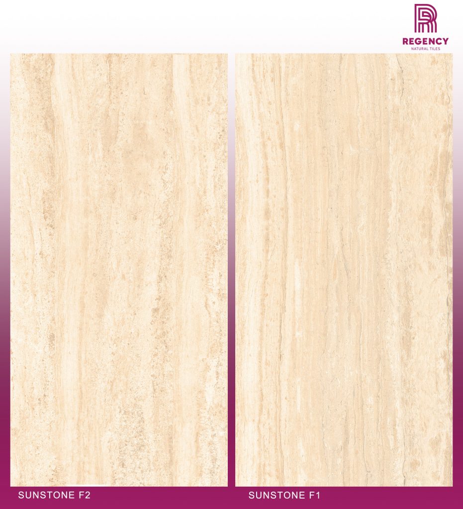 The Sunstone Series is a large 600 mm x 1200 mm Glazed Vitrified Tile (GVT) featuring a design with warm, sunny tones. It is available in both a Polished (Glossy) finish and a Matt finish.