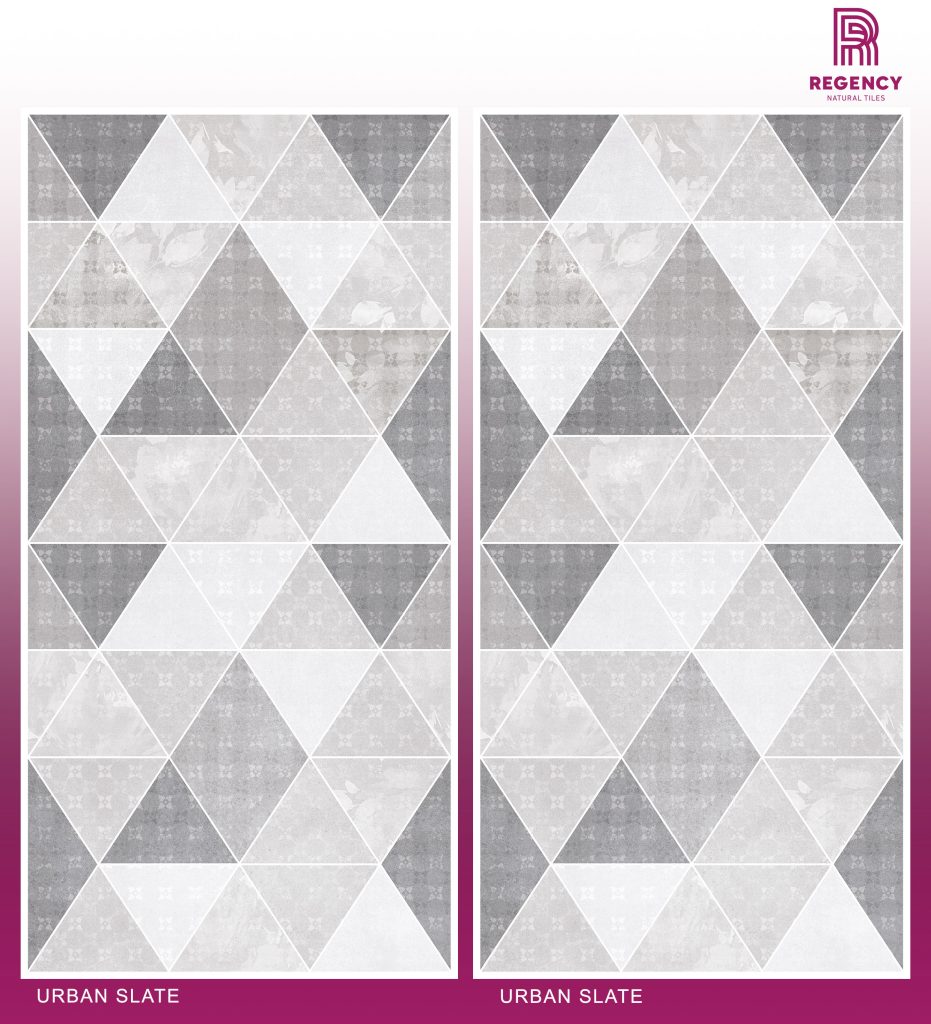 The Urban Slate Series is a large 600 mm x 1200 mm Glazed Vitrified Tile (GVT) in a dark, textured slate-look pattern. It is available in both a Polished (Glossy) finish and a Matt finish.